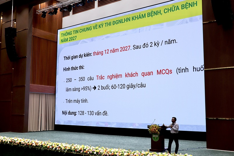 Theo đó, kỳ thi được xây dựng trên cơ sở Luật Khám bệnh, chữa bệnh năm 2023 cùng các văn bản hướng dẫn liên quan của Hội đồng Y khoa Quốc gia, với hình thức thi trắc nghiệm, chủ yếu dựa trên các tình huống lâm sàng. Dự kiến kỳ thi sẽ được tổ chức vào tháng 12/2027 với quy mô từ 250–350 câu hỏi, bao phủ khoảng 128–130 vấn đề trọng tâm theo các hệ cơ quan như nội, ngoại, nhi, sản…